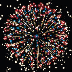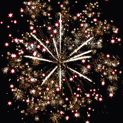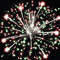 9. красных и зелёных огней, множества трещащих сфер (залп).