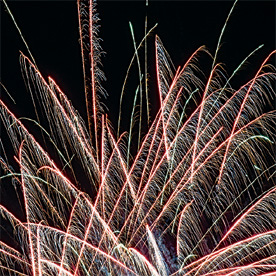 2. красных огней и золотых форсов с серебряными искрами;