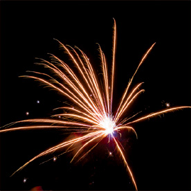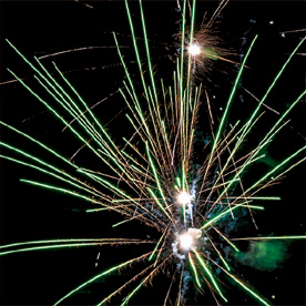 14. зеленых огней и золотых форсов с трещащими серебряными искрами (залп);