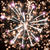 Разноцветные кометы разрываются сферами из: красных и синих огней, трещащих искр; золотых форсов с серебряными трещащими искрами и множества трещащих золотых огней; серебряных форсов с красными, серебряными и фиолетовыми огнями на концах и золотых трещащих огней.