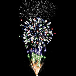 Нижние уровни. Букеты из золотых форсов. Букеты из зелёных мерцающих огней. Букеты из свистящих трасс. Букеты из золотых мерцающих огней. Букеты из синих огней. Верхние уровни. Сферы из красных, зелёных, синих огней и швермеров. Сферы из серебряных форсов и белых мерцающих огней.