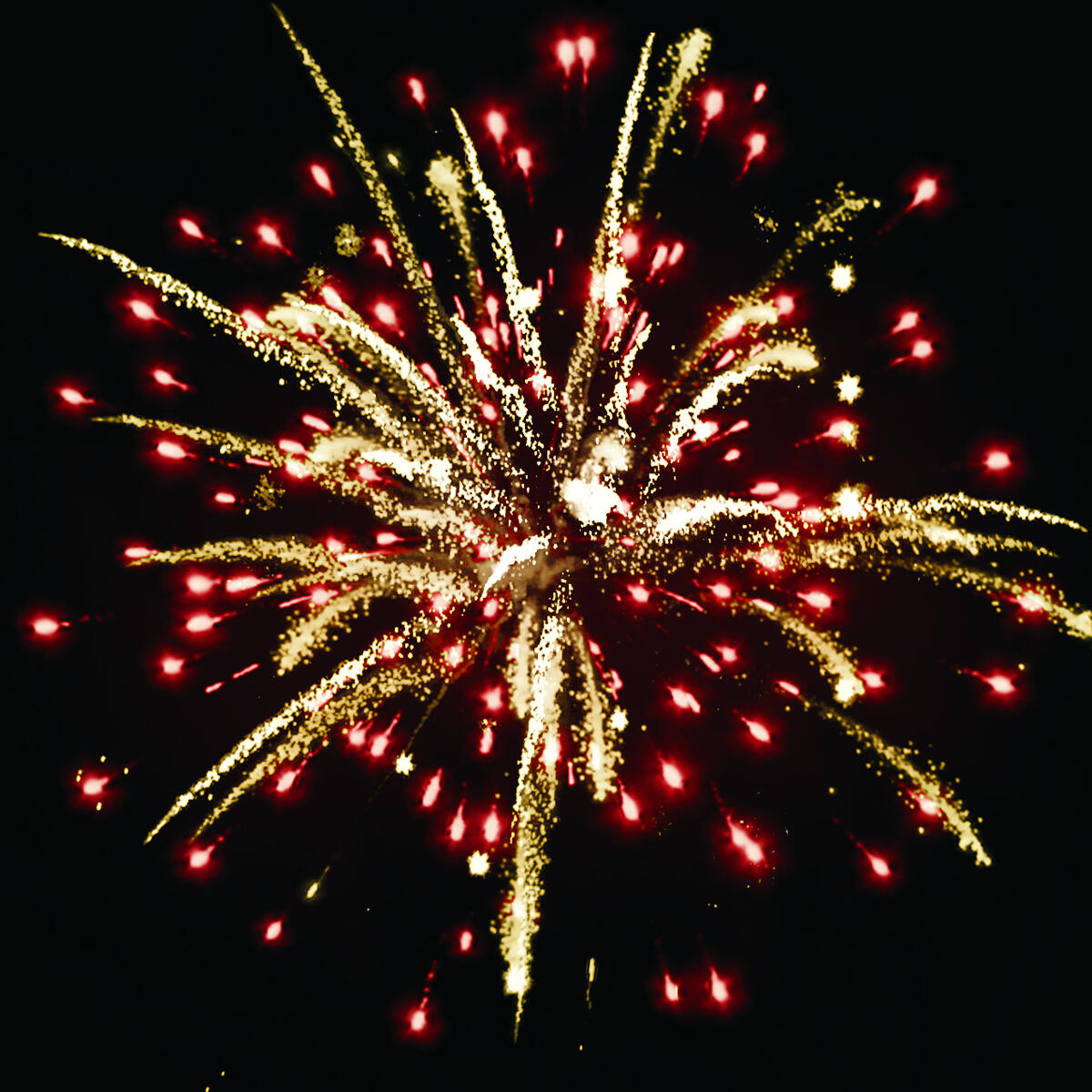 2-3. золотых искристых форсов и красных, зелёных огней;