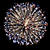 Разноцветные кометы разрываются сферами из серебряных форсов и: Синих и красных мерцающих огней; Красных и белых мерцающих огней; Зелёных и золотых мерцающих огней; Трещащих огней (залп).