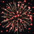 Разноцветные кометы разрываются сферами из: крупных красных и зелёных, синих огней; золотых искристых форсов и зелёных мерцающих огней; серебряных форсов с зелёными огнями на концах и красных мерцающих огней; коротких серебряных форсов с трещащими искрами, крупных зелёных и золотых мерцающих огней; золотых форсов с золотыми, белыми мерцающими искрами и красных мерцающих, синих огней; серебряных трещащих форсов и зелёных мерцающих огней.