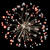 Разноцветные кометы разрываются сферами из: Красных и белых мерцающих огней; Фиолетовых и зелёных мерцающих огней; Трещащих огней; Множества трещащих сфер.