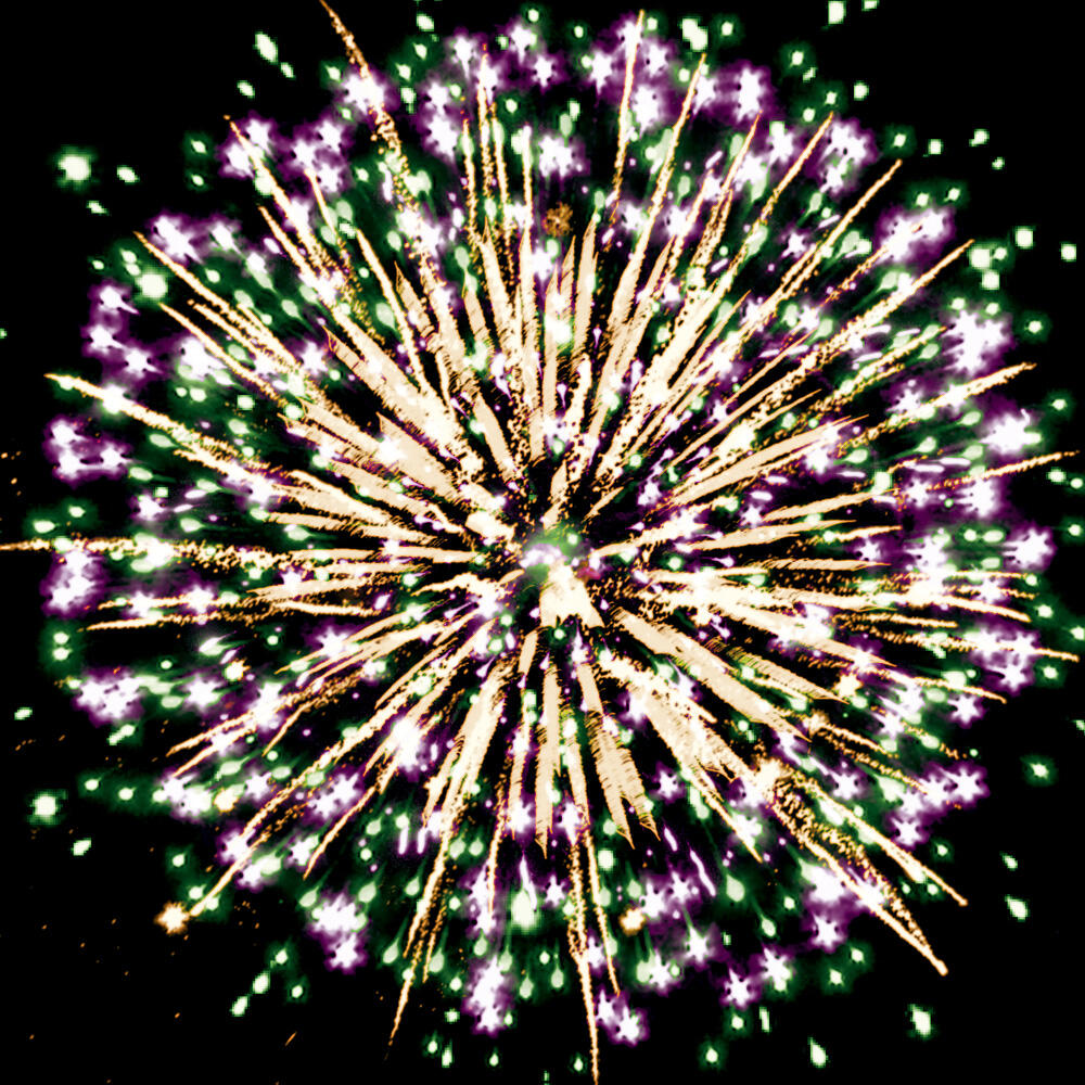 1-2. золотых искристых форсов, красных, фиолетовых и мерцающих белых, зелёных огней;